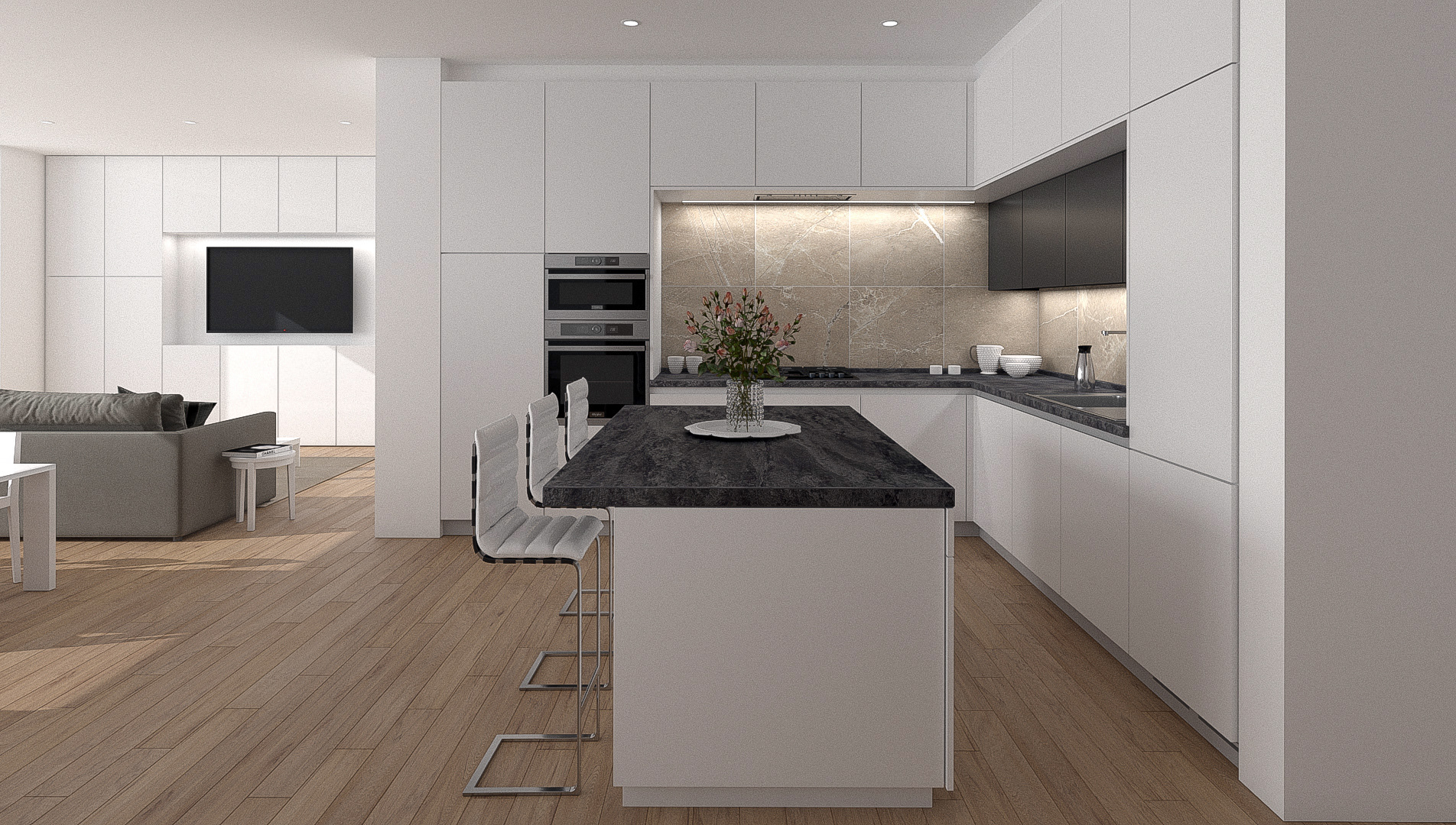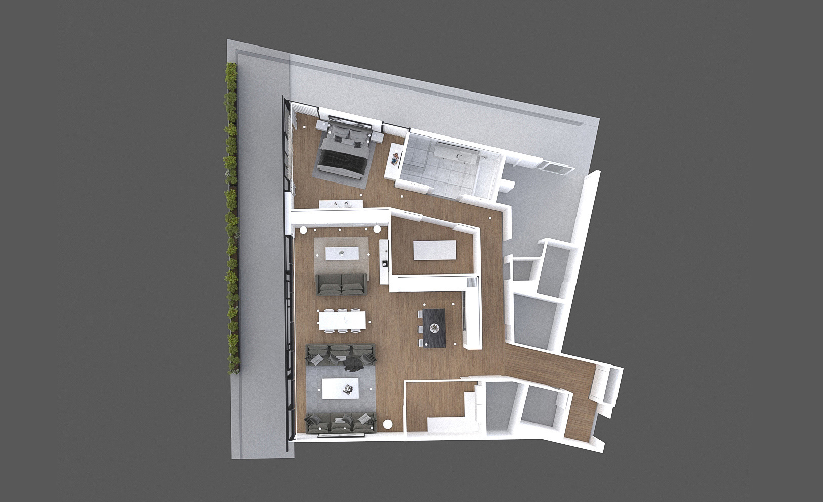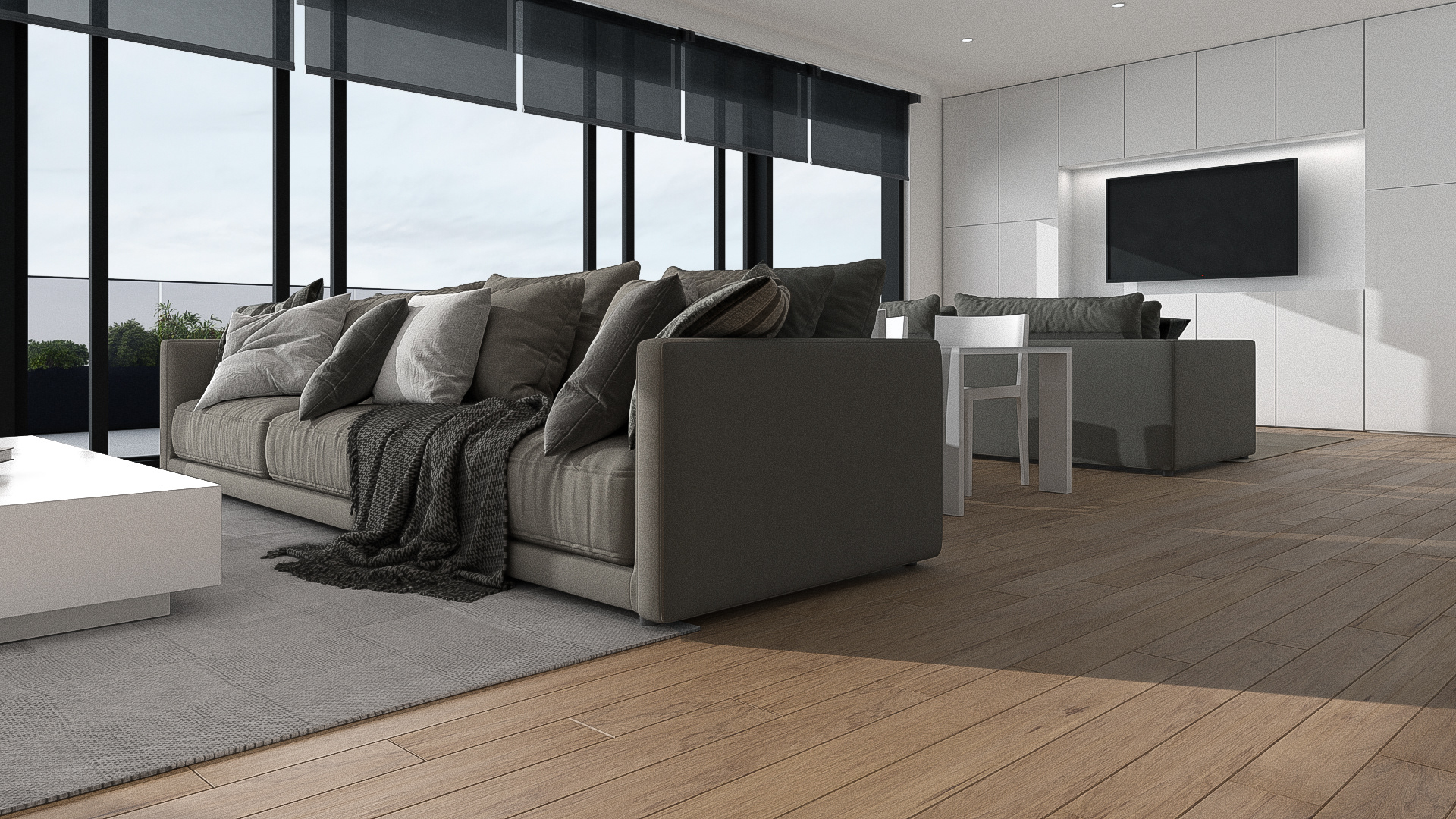 Click image to view large format. Render from AutoCAD drawing of a typical condo unit. AutoCAD, 3DMAX, Vray, After Effects, Photoshop.