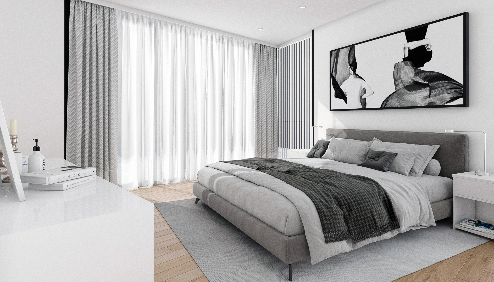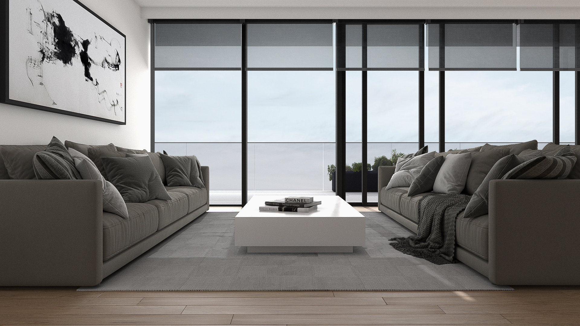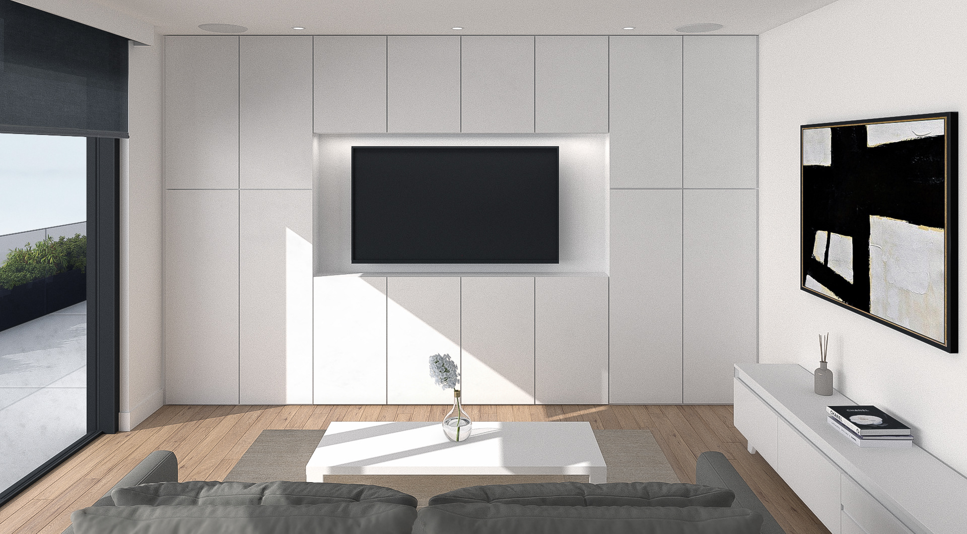 Click image to view large format. Render from AutoCAD drawing of a typical condo unit. AutoCAD, 3DMAX, Vray, After Effects, Photoshop.